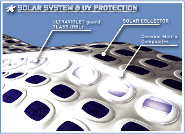- The solar collectorutilization as source of energy, solar panels situated on the roofing. The shell exterieur of the house is in Ceramic Matrix Composites ultra resistante. Albany International Techniweave, Inc.