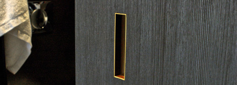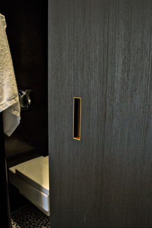 Chambre 1: Porte coulissante de salle de bain en cédre du japon finition en laque japonais URUSHI fabrication au Japon Sawakou Urushi design sur mesure.