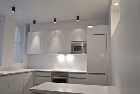 La cuisine13m2: CUISINE NOLTE Facade Polymère blanc brillant / Plan de travail aspect blanc minéral.