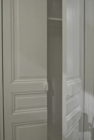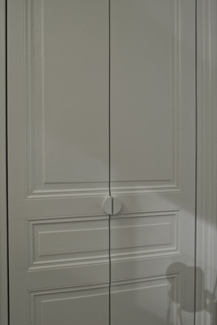 Passage condamné et ancienne porte coupée en deux pour la porte de placard, récuperation de l'ancienne porte et charniéres invisibles