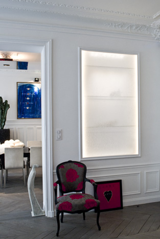 Vitrine lumineuse et passage lumière translucide dans le mur porteur.