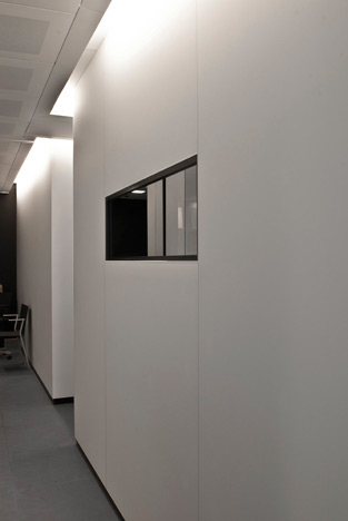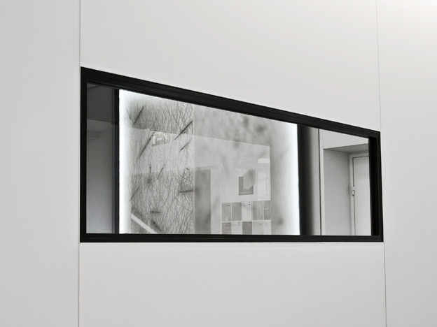 Bureau 2: Dalles de faux-plafond KREON mur en Matelac verre satiné.