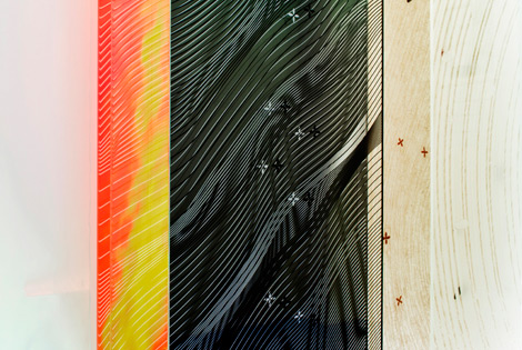 Les cloisons coulissantes: 8 cloissons sur 3 rails. Ce sont des échantillons de verre en démonstration avec un effet de superposition.