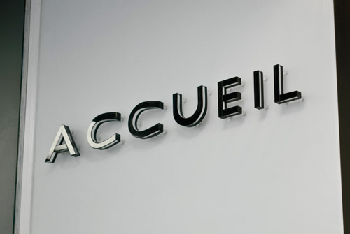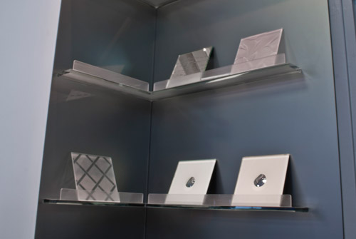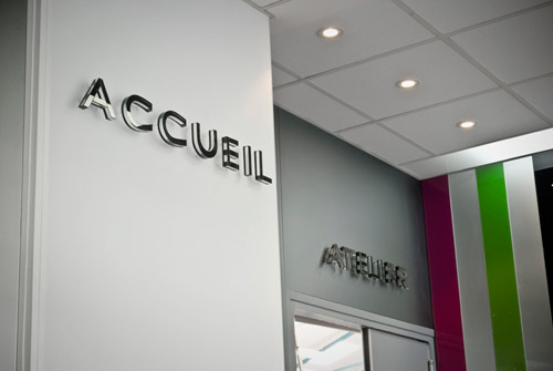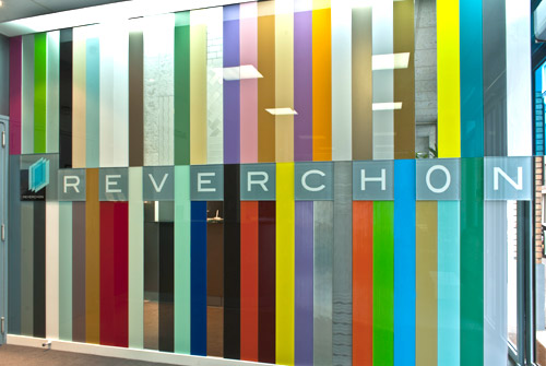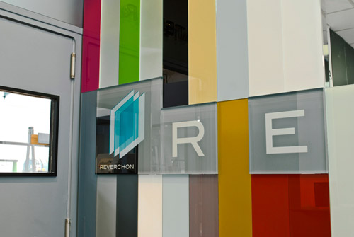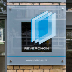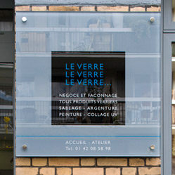Enseignes carree en verre réalisées à l'atelier Reverchon.