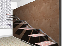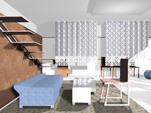Le mobilier qui en découle, est conçu par accentuation de ce rapport à l'espace, afin de mettre en évidence des points de contact et d'appuis.