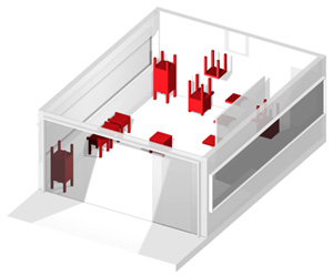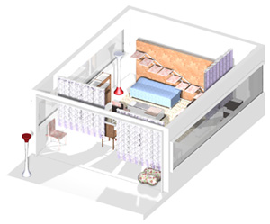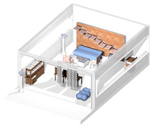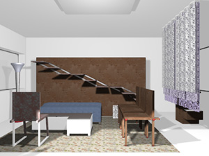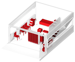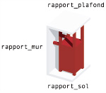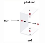 Le principe de recherche est d'illustrer des schémas de meubles, symbolisés par leurs rapports au sol, au mur et au plafond.
